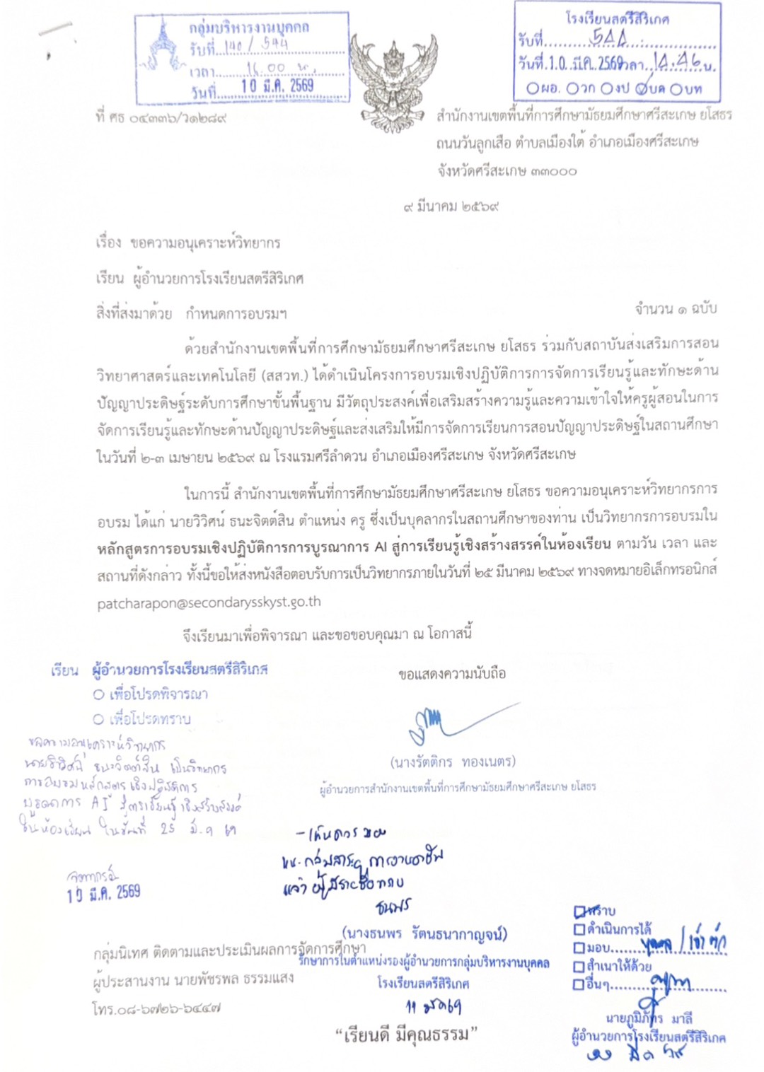9 -13 มีนาคม 2569 อบรมครูหัวใจนวัตกร ขับเคลื่อนการเรียนรู้สู่อนาคตด้วย AI