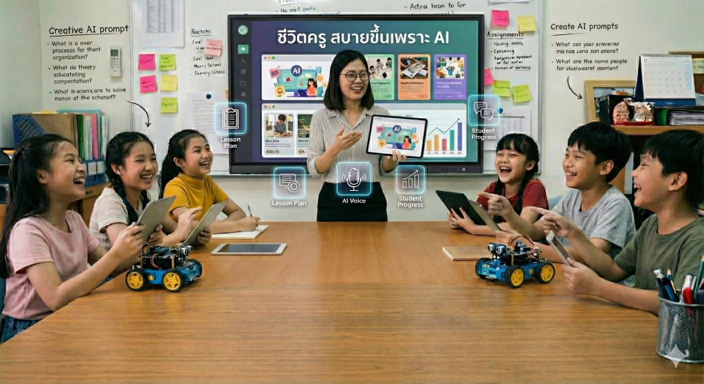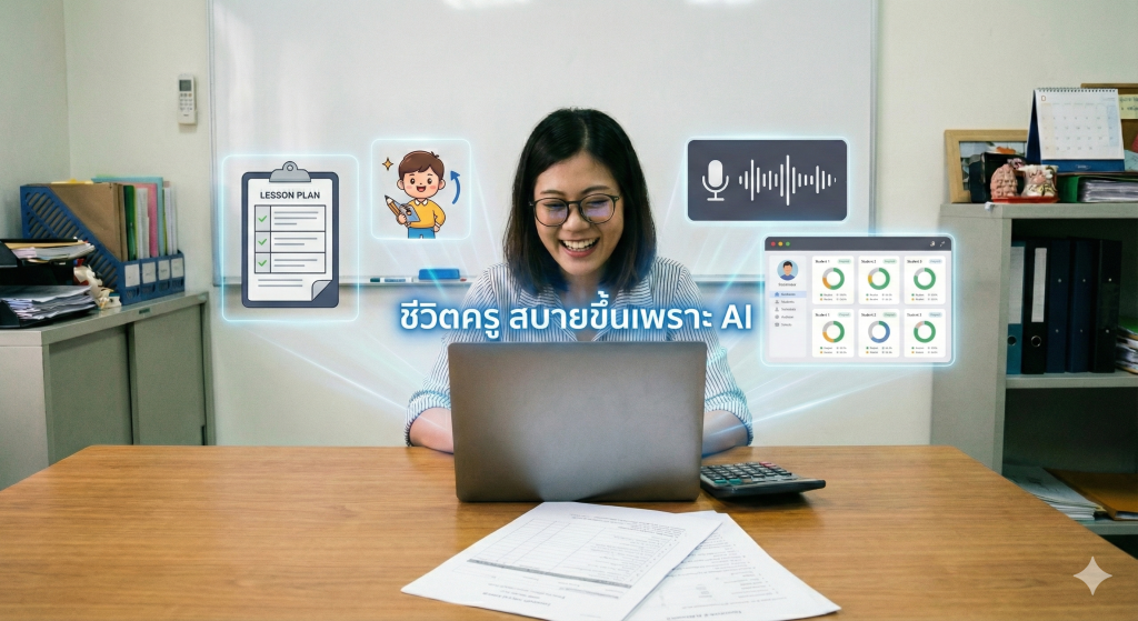 ให้ AI ช่วยคุณครู (บางส่วนในคอร์สเรียน) คิด / วิเคราะห์คำอธิบายรายวิชา เป็น Active Learning เขียนตารางโครงสร้างรายวิชา เขียนหน่วยการเรียนรู้ เขียนแผนการจัดการเรียนรู้ สร้างสื่อการเรียนรู้(ภาพ วิดีโอ การ์ตูน ทำเสียง นิทาน เกม) สร้างเอกสารประกอบการสอน(ใบกิจกรรม ใบงาน ใบความรู้ฯ) สรุปและสร้างรายงานในรายวิชา สร้างปกรายงานสวย ๆ เพียงไม่กี่คลิก สร้างเว็บไซต์เพื่อเก็บรวบรวมและเผยแพร่ผลงาน เพื่อความ ก้าวหน้าตาม ว PA(เพิ่มเติม)